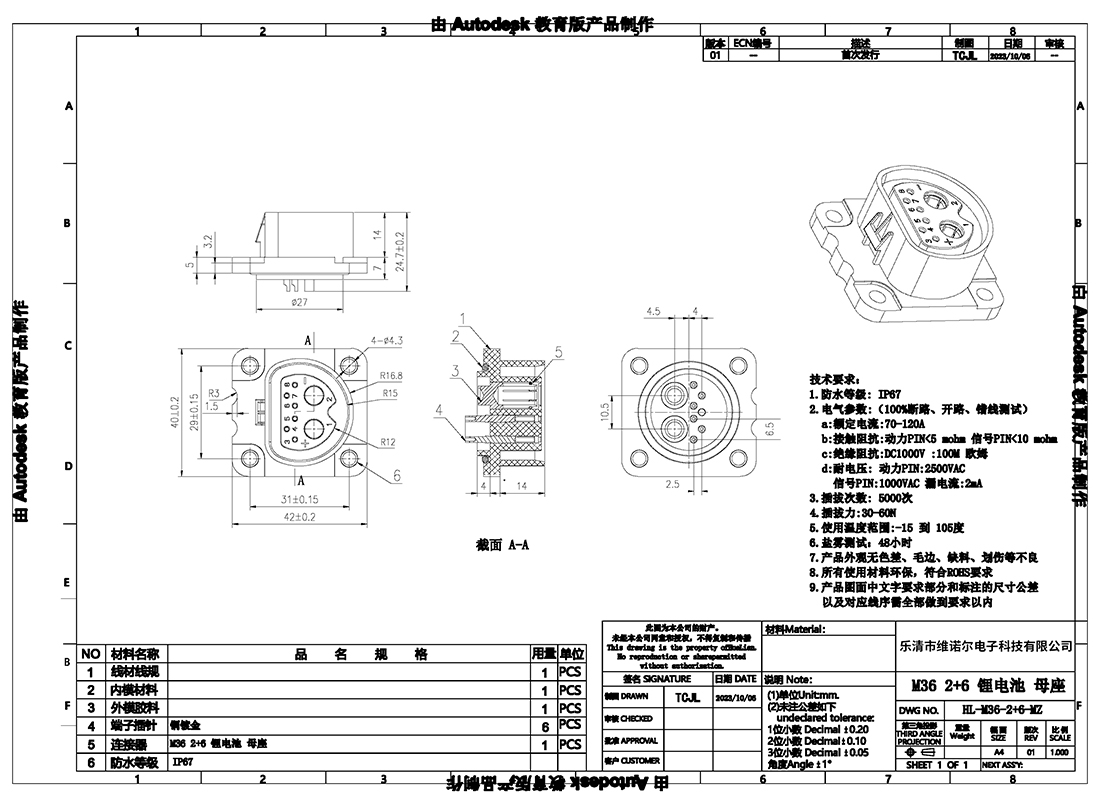 M36-2+6母座