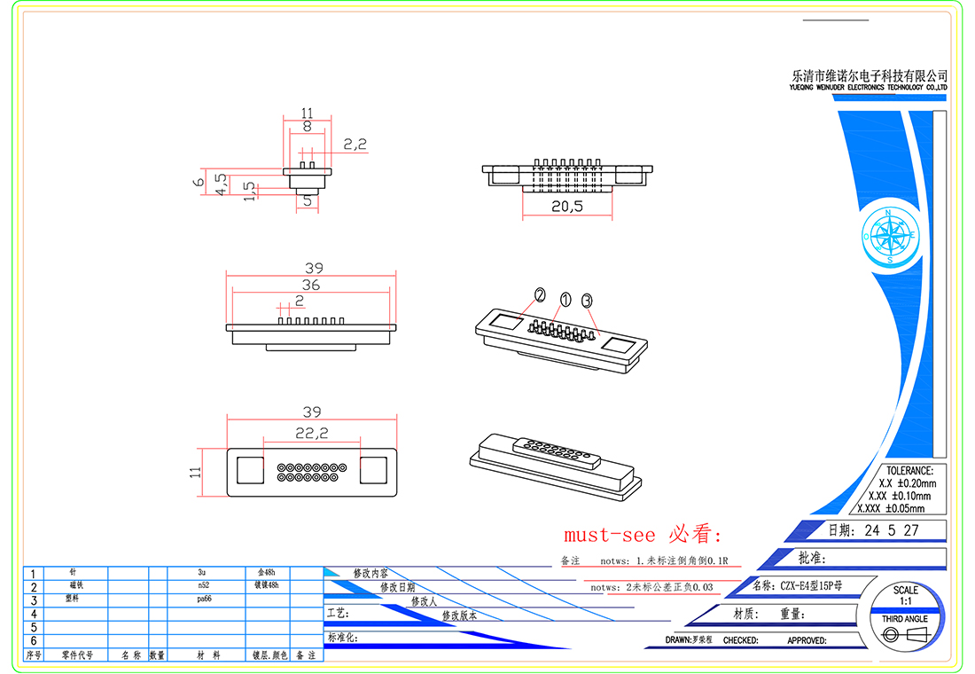 防水磁吸充电连接器